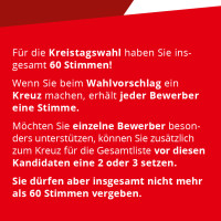 Für die Kreistagswahl haben Sie insgesamt 60 Stimmen!
